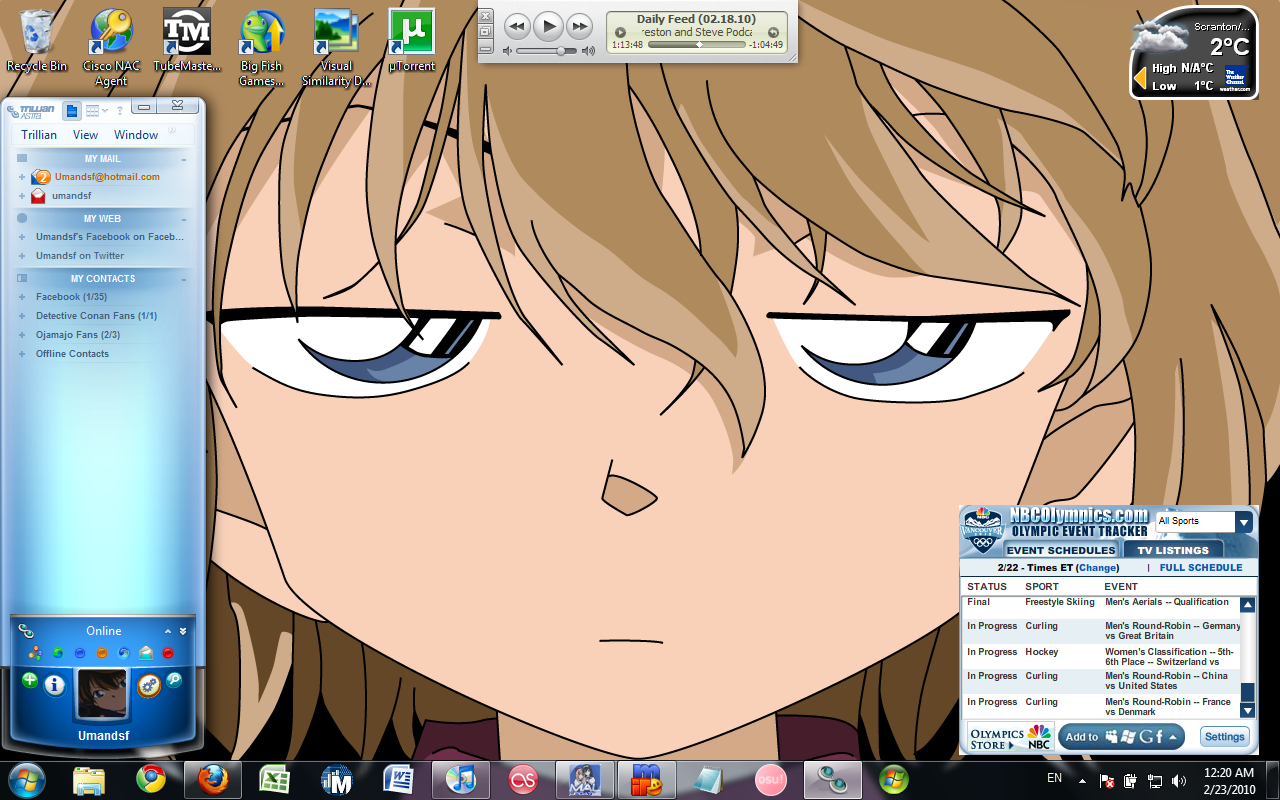 No sir, that is Windows XP with service pack 3 tweaked with all my personal settings. I made it to mirror Windows 98se (loved that OS <3) with a sound theme and everything. I built my PC for gaming and I just really really really don't like the way XP looks. My desktop is 1920x1080 on an Acer 24'' WS monitor (full HD ftw, model # is H243H). But i never have the picture take up the whole screen. For the icons, I made them smaller to fit better with my bg images (Caption size = 15).ranger wrote:oh my, is that windows 2000?MrWiz88 wrote: Nice pic.. anywho, here's mine...